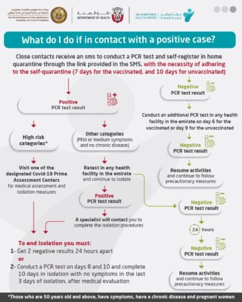 Абу-Даби обновил протоколы безопасности для людей с положительным результатом теста на COVID-19 и тех, кто находится в тесном контакте с кем-то, зараженным вирусом. Новые меры были объявлены Комитетом по чрезвычайным ситуациям, кризисам и стихийным бедствиям Абу-Даби совместно с Департаментом здравоохранения и Центром общественного здравоохранения Абу-Даби в соответствии с усилиями по «защите здоровья и безопасности населения».