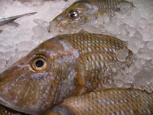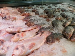 A, например, треска (cod), красная рыба (salmon) и несколько других видов (monk) прибыли из северных широт. Также, в продаже здесь всегда имеется несколько сортов пресноводной рыбы (например, tilapia). И, что стало для меня сюрпризом, самые дешевые мелкие креветки, также оказались выведенными на пресноводных фермах!