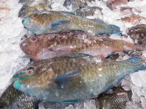 Свежие кальмары здесь представлены двух видов – маленькие (из Индийского океана) и большие (местные). Оказывается последние чрезвычайно популярны не только на кухнях, но и у рыбаков, они служат прекрасной наживкой для ловли крупной рыбы.