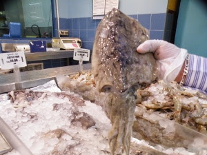 Свежие кальмары здесь представлены двух видов – маленькие (из Индийского океана) и большие (местные). Оказывается последние чрезвычайно популярны не только на кухнях, но и у рыбаков, они служат прекрасной наживкой для ловли крупной рыбы.