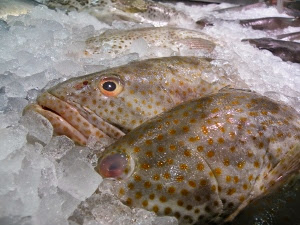 A, например, треска (cod), красная рыба (salmon) и несколько других видов (monk) прибыли из северных широт. Также, в продаже здесь всегда имеется несколько сортов пресноводной рыбы (например, tilapia). И, что стало для меня сюрпризом, самые дешевые мелкие креветки, также оказались выведенными на пресноводных фермах!