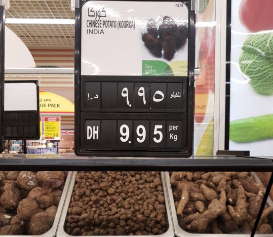 Эти черные клубочки, наверное, слишком невзрачные и непривлекательные, чтобы мы обратили на них внимание. Но они пользуются огромной популярностью у азиатов и всегда есть в продаже, не только в ЛуЛу, но и в небольших магазинах и также могут называться там “китайской картошкой”. Их культивируют и в Африке, поэтому во французском языке они могут называться Мадагаскарским или Африканским картофелем.