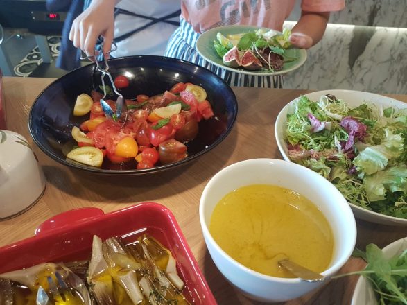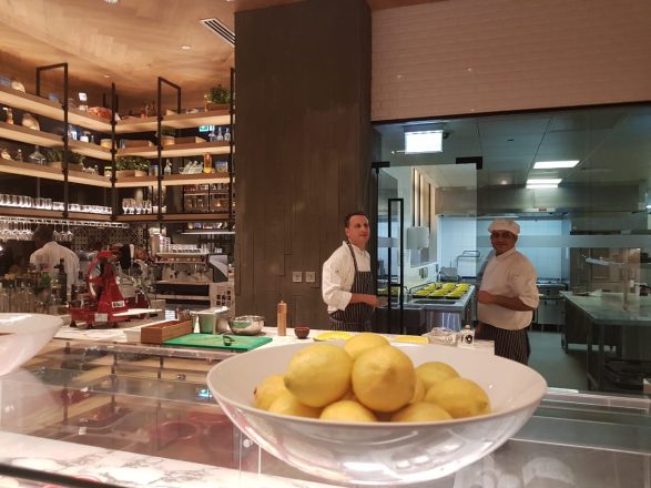 Кухня – итальянская до мельчайших подробностей, шеф-повар Федерико Теста заботится об этом. И она прекрасно экологично продумана: в открытом доступе салаты, сыр, холодные морепродукты, разные закуски, а основные блюда – мясо, рыбу, ризотто, пасту и пиццу – повара развозят между столами или по вашему заказу, готовят на открытой кухне специально для вас.