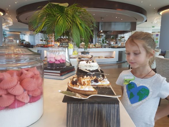 А в это время, родители, на открытой веранде с видом на море, наслаждаются барбекью-буфетом. Там Шеф повар жарит курицу и говядину на углях, нарезает нежнейшие стейки, укладывает на узорные тарелки. Все это можно сдобрить солью, которой 6 видов, включая розовую и морскую, а также соусами – оригинальными американскими.