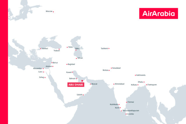 Среди направлений Air Arabia Abu Dhabi – Азербайджан, Бангладеш, Бахрейн, Грузия, Египет, Иордания, Индия, Ирак, Иран, Казахстан, Кувейт, Ливан, Марокко, Непал, Оман, Пакистан, Россия, Турция, Шри-Ланка, Узбекистан – всего 20 стран.