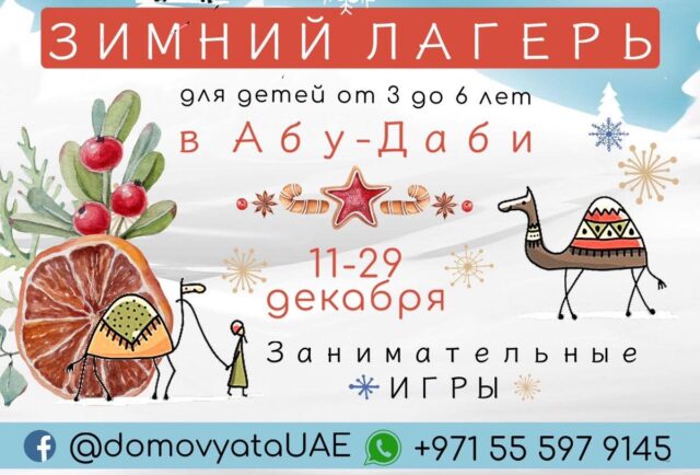 Время весёлых каникул: 11-29 декабря по будням с 9.00 до 12.30 (возможна продлёнка до 15.00). Стоимость: 5 дней – 750 дирхамов; 1 день – 180 дирхамов. Подробнее: WhatsApp +971555979145.